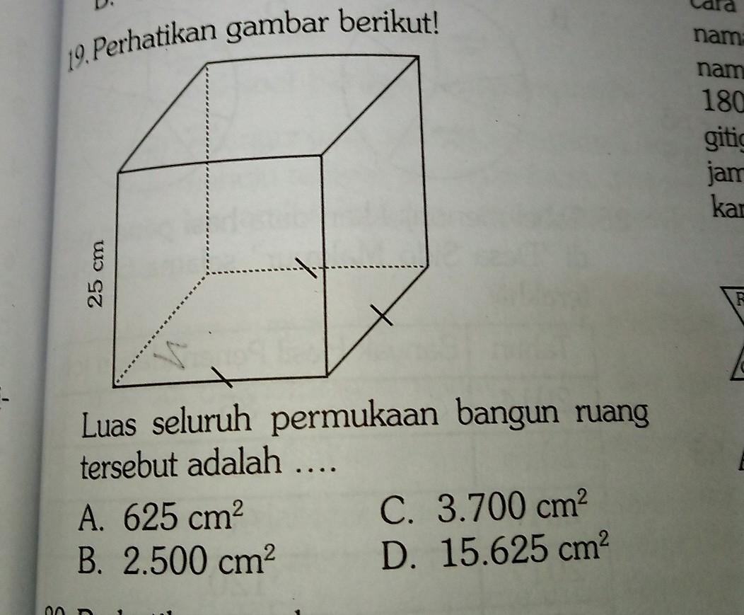 Aug 10, 2021 · 1. Bangun kubus memiliki 12 rusuk yang sama panjang. Perhatikan gambar bangun ruang berikut! Volume bangun tersebut adalah …. Jadi, jawaban yang tepat adalah c.